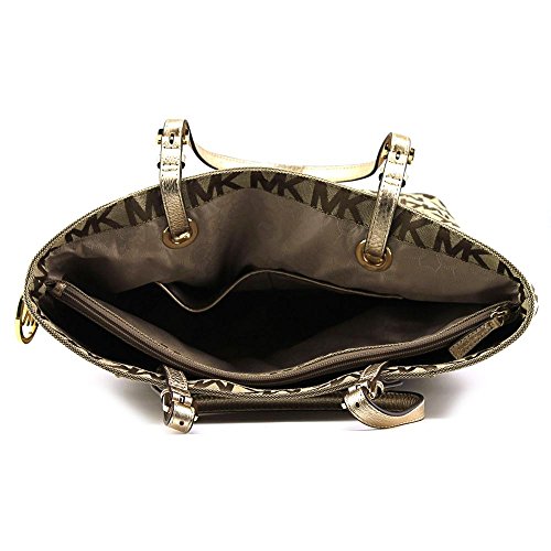 -. Binding : Apparel -. Brand : MICHAEL -. ClothingSize : One Size -. Color : brown -. Department : womens -. Feature : Logoed open-top tote in jacquard construction featuring hardware feet and logo fob / Adjustable leather top handles -. Label : MICHAEL -. Manufacturer : MICHAEL -. Model : 30S11TTT4J -. MPN : MKJSLT3641510 -. PackageQuantity : 1 -. PartNumber : MKJSLT3641510 -. ProductGroup : Apparel -. ProductTypeName : HANDBAG -. Publisher : MICHAEL -. Size : One Size -. Studio : MICHAEL -. Title : MICHAEL E/W Signature Tote Bag
