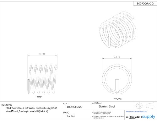 E-Z Lok Threaded Insert, 18-8 Stainless Steel, Helical, M3-0.5 Internal Threads, 3mm Length (Pack of 10)