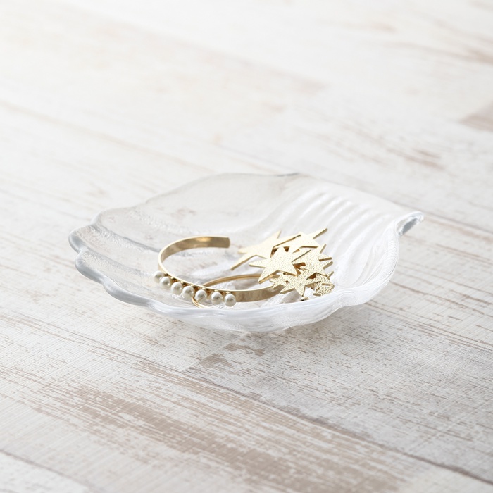 투명한 유리와 조개의 형태가 시원한에 여름에 적합.