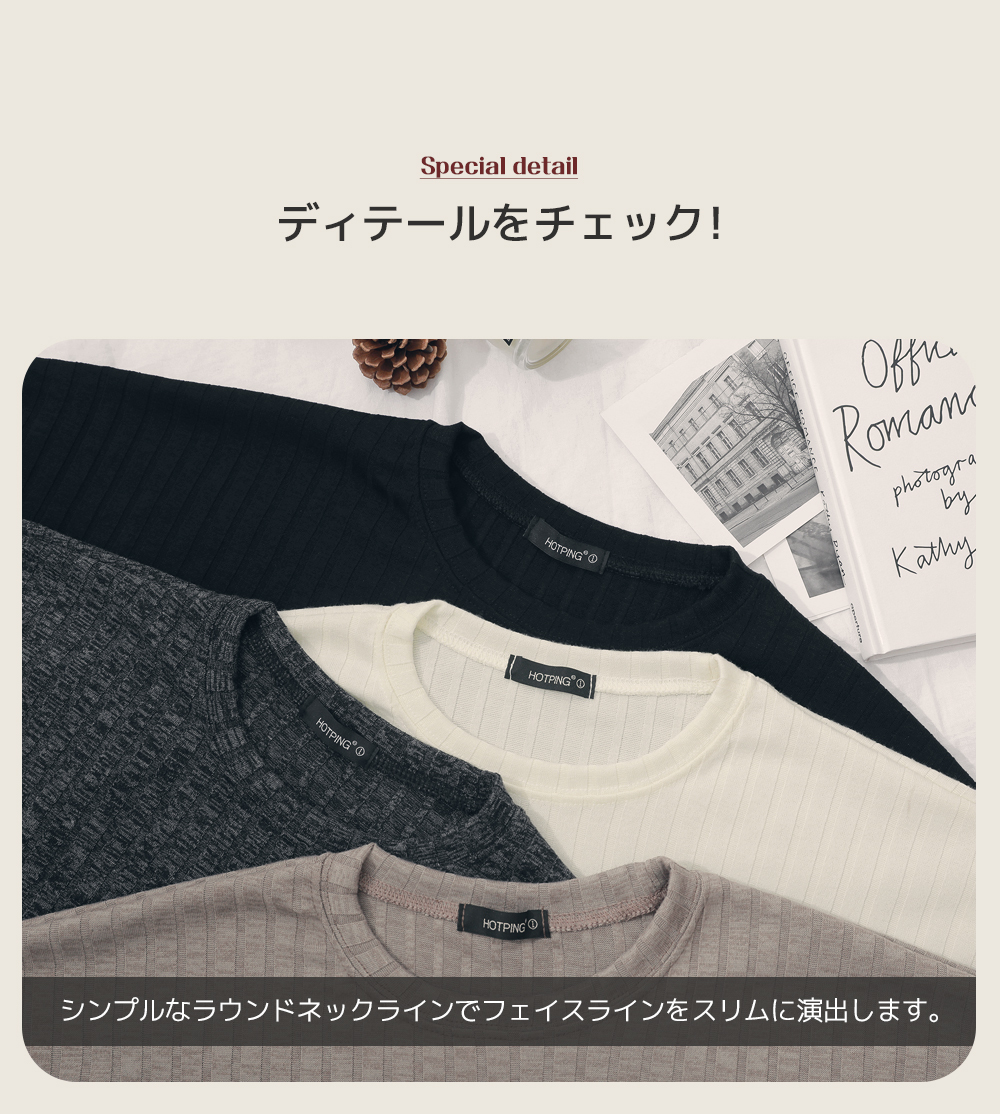 HOTPINGの愛用者様たちから人気だったリブTが今期はパフスリーブとして戻ってきました!ボリュームのある袖口でラブリーなモードを演出します。ラウンドネックで誰でも気軽に着用いただけるデザインで全体的にゆとりのあるサイズ感で体型カバーもバツグンのアイテムです。広めのリブデザインで型崩れの心配もありません。程よい丈感でパンツともスカートとも合わせやすく多様なコーデが楽しめます。ベーシックな4カラー展開となっています。