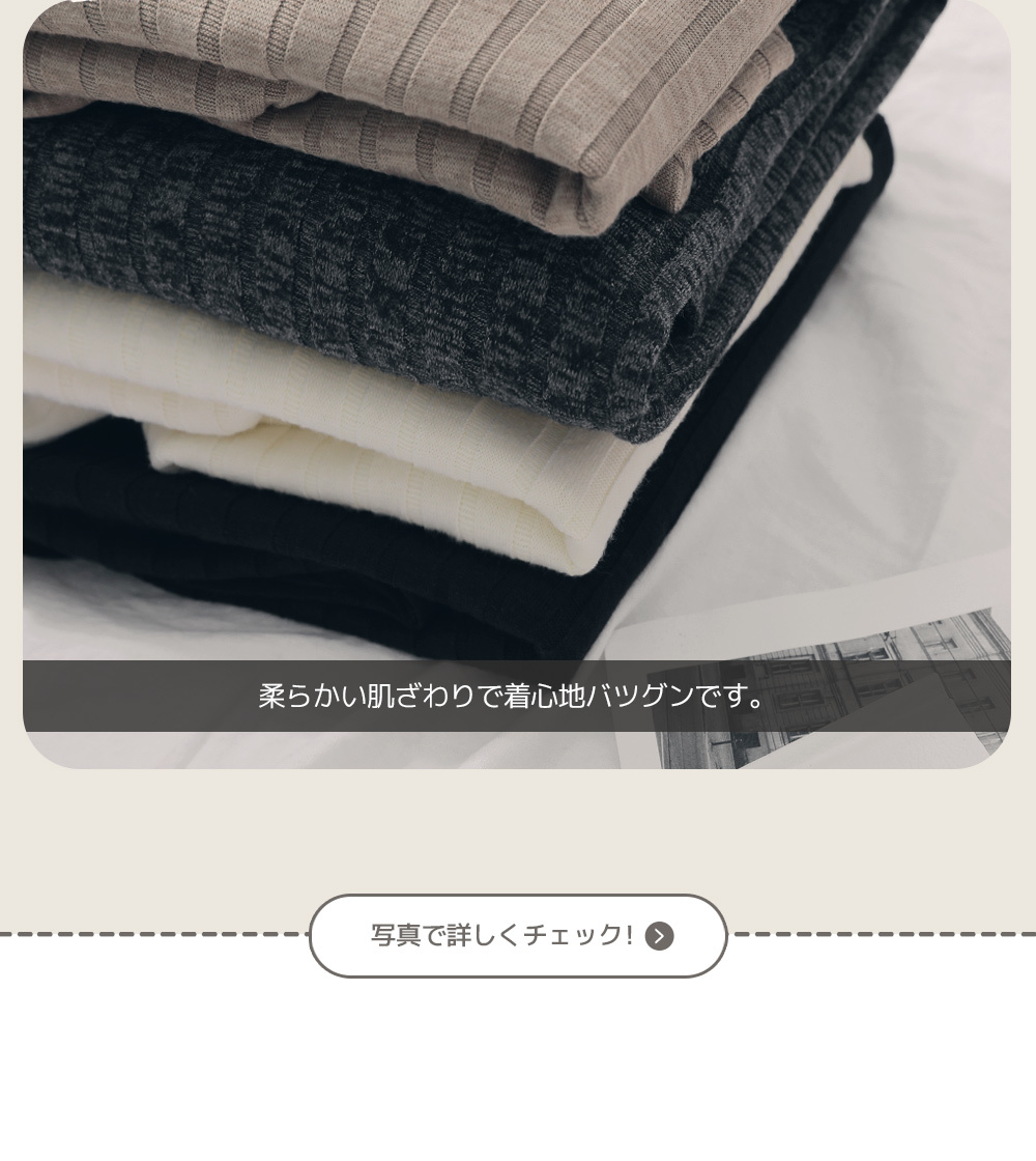 | 詳細情報 | サイズ-ルーズ/伸縮性-あり/厚み-普通/裏地-なし/透け感-なし(*アイボリーは透け感あり) |