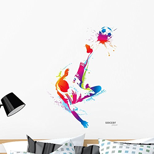 Soccer Player Kicks Ball Wall Decal by Wallmonkeys Peel and Stick Graphic (36 in H x 26 in W) WM273999