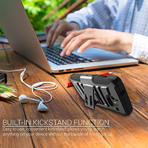- Convenient Low Profile Kickstand - Built right into the back of your new case is the kickstand which locks into place for hands-free landscape viewing. Watch videos or movies comfortably with MiniTurtle's Clip Armor case.