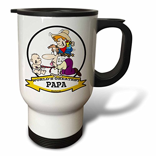 3dRose tm_103419_1 Funny Worlds Greatest Papa Men Cartoon, Travel Mug, 14-Ounce, Stainless Steel