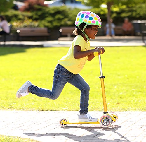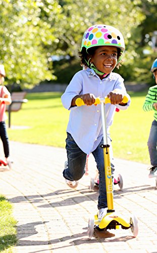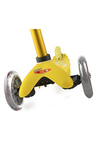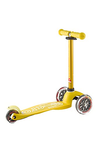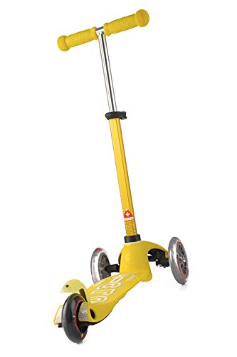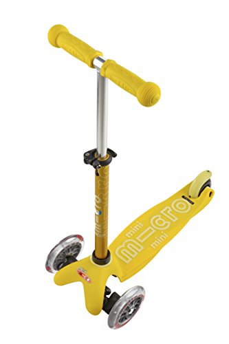 The new mini deluxe has all the features that made the mini original the best-rated scooter for children ages 2-5. The mini deluxe comes in 8 great colors, has a higher weight capacity of up to 75 lbs. and the new adjustable T-bar accommodates little ones as they grow (the T-bar adjusts from 17" up to 25" from the deck - this is 1" higher than the mini original's stationary T-bar). your child will love riding this award-winning Micro and you will love the years of fun and exercise it provides your child. The smooth-gliding wheels, low-to-the-ground deck and stable steering all make the mini perfect for preschoolers and kindergartners. What makes the mini deluxe unique is the adjustable T-bar and lean-to-steer design; children steer by using their body weight to lean right and left, intuitively learning to lean into a turn, while developing the balance and coordination used in many sports. The mini has the smoothest, quietest ride available thanks to high quality wheels and a flexible fiberglass reinforced deck, which together absorb bumps in the sidewalk. Safety certified by the CPSC, the mini deluxe is recommended for children up to 75 lbs. Safety - for best protection, we recommend that children wear helmets and knee pads when riding. Non marking wheels allow children to learn to scoot in the safety of your home.