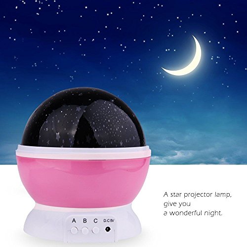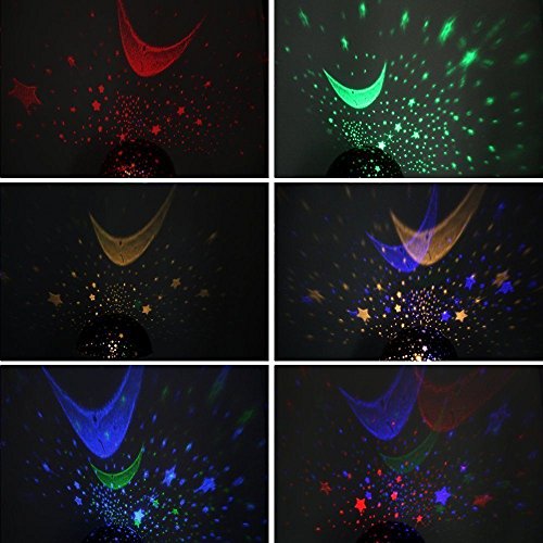 Features: * Rotates at 360-degree degree, provides a fantastic moving starry sky * Full night sky projection on ceiling and walls * Illuminates for a calming nightlight effect * Easy operation,Power by 4 x AAA battery (Not Included) or USB cable * Ideal for decorating wedding, birthday, parties. Great for romantic night lamp and decoration light use Directions: * Material: Plastic electronic components * Light Source: 4 LED Bulbs (0.8w Warm light, 0.5w blue light, 0.5w Green light, 0.5w Red light) * Voltage: DC5V * Power Requirements: USB Cable(included) / 4x AAA batteries (not Included) * Color: Blue / Pink / Purple * Size: 120*120*135mm * Weight: 356g 0 |
