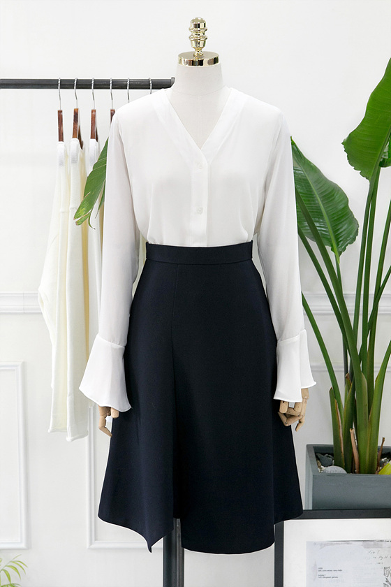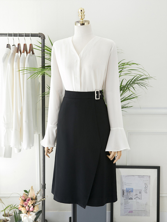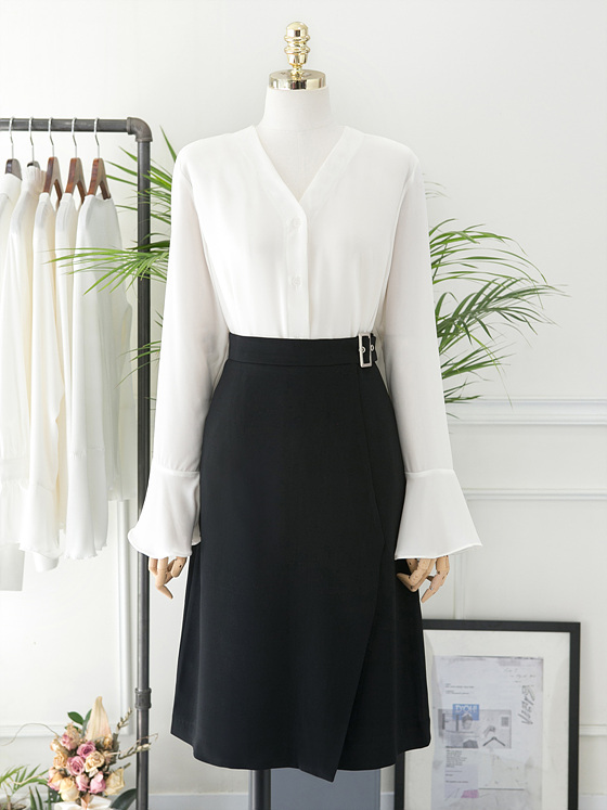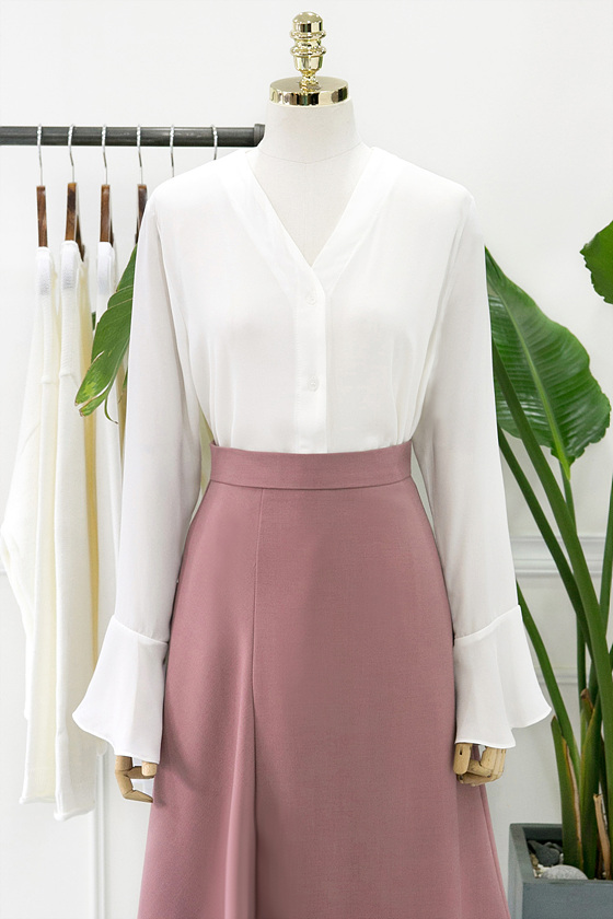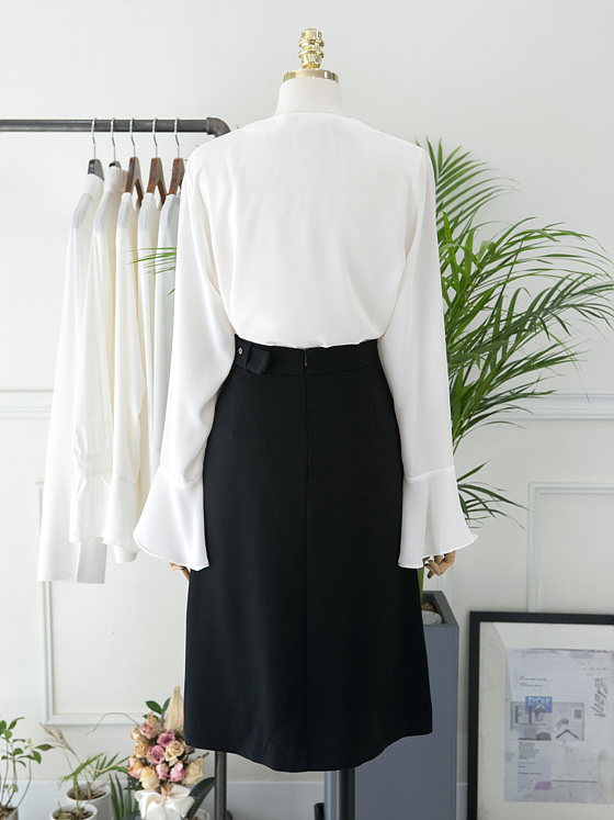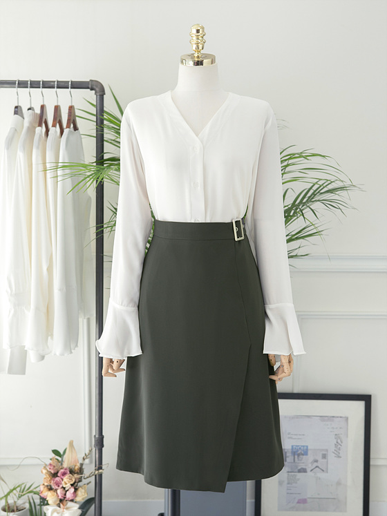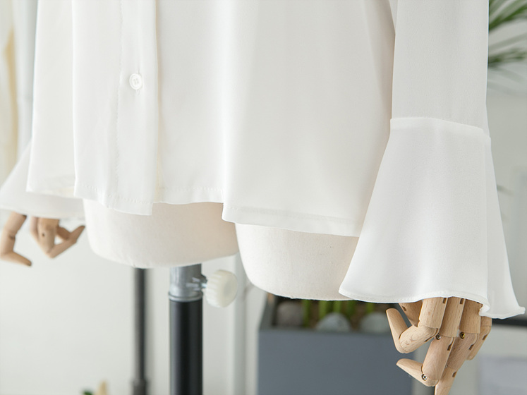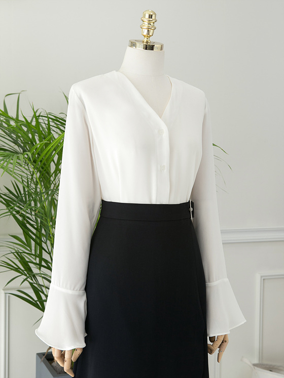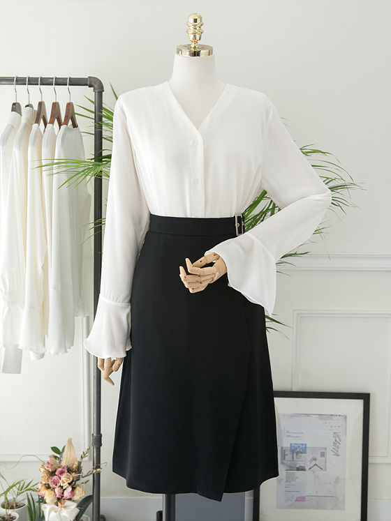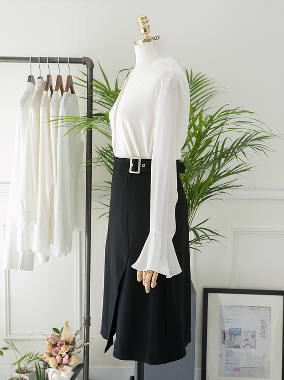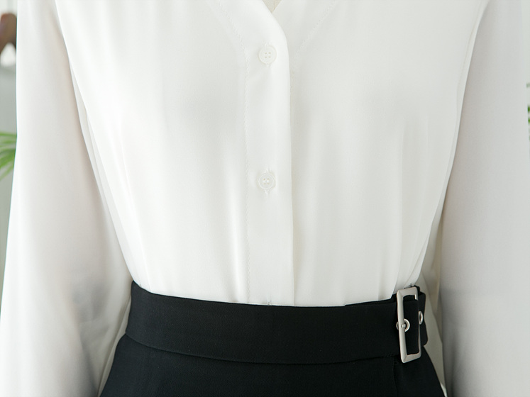 White V Neck Ruffle Sleeveless Fall Blouse Waist Fashion Wide Office Look Suit