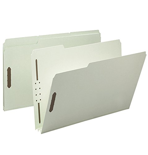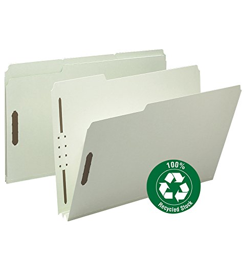Smead Fastener Folder, 100% Recycled, 1/3-Cut Tab, Pressboard, 2 Fasteners in Positions 1 and 3, 2-Inch Expansion, Legal Size, Gray/Green, 25 per Box (20004)