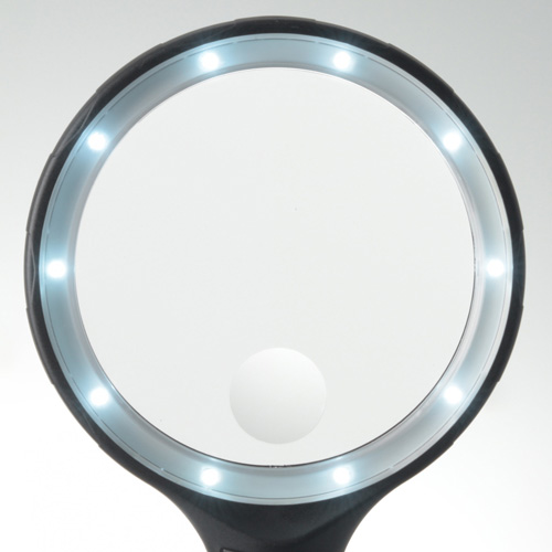 ●明るく見やすい、二種類の倍率を持つデュアルレンズとLED照明付きのルーペです。