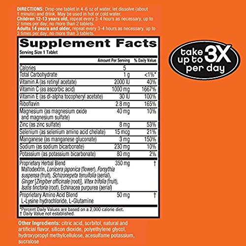 -. Feature : Effervescent formula offers fast-acting absorption in tasty Orange Flavor / 1,000 mg of Vitamin C per tablet to support your immune system, Can take 3X per day / High in antioxidants (Vitamins A, C & E) and excellent source of Zinc, Selenium, Manganese and Magnesium / ProP.R.Ietary Herbal Blend including Echinacea & Ginger / Gluten Free & No Preservatives