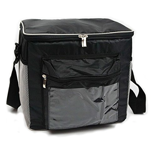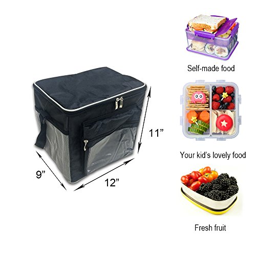 Large Insulated Cooler Lunch Box Tote Bag, Big Meal Prep Carrier With Shoulder Strap for Women/Men/Kids, 12"x9"x11" (Black)