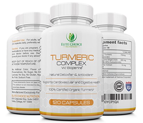 -. Binding : Health and Beauty -. Brand : Elite Choice Nutrition -. EAN : 0646437261890 -. Feature : YOU DESERVE THE BEST: High quality pure Turmeric Curcumin sourced from Organic Turmeric root (curcuma longa). Free from additives, preservatives, artificial colors, GMOs and Gluten. Safe and effective. Best Value 2 Months Supply! / NATURAL REMEDY: Turmeric is a powerful herb that has been used for thousands of years for its benefits. It is a strong antioxidant. It supports anti-ageing, cell, brain, cardiovascular and digestive health, weight loss and healthy joints. Achieve greater balance and well-being. / MAXIMUM RESULTS: Make the most of your Turmeric. Our product is enhanced with Bioperine a patented form of black pepper which can help increase the bioavailability & absorption of Turmeric by as high as 2000 percent. / QUALITY GUARANTEED: Elite Choice Nutrition goes the extra mile to ensure our supplements are the highest quality possible. We use a TOP QUALITY, FDA registered and GMP certified facility where our products go through extensive quality control testing before being bottled and sold. CHOOSE A SUPPLEMENT YOU CAN TRUST! / LIFETIME MONEY BACK GUARANTEE AND WORLD CLASS CUSTOMER SERVICE: See Real Results or request a refund! When you buy you are protected by a 'no-questions asked' money back guarantee. -. IsAdultProduct : 0 -. Label : Elite Choice Nutrition -. Manufacturer : Elite Choice Nutrition -. ProductGroup : Health and Beauty -. ProductTypeName : HEALTH_PERSONAL_CARE -. Publisher : Elite Choice Nutrition -. Studio : Elite Choice Nutrition -. Title : ORGANIC TURMERIC CURCUMIN EXTRACT with 95% Curcuminoids & Bioperine® for 2000% Better Bioavailability - 2 MONTH SUPPLY 1000 mg per serving - Maximum Potency & 100% Natural -. UPC : 646437261890