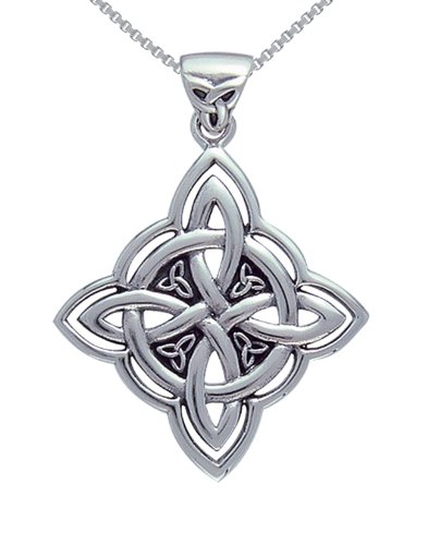 -. Feature : Metal: .925 Sterling Silver; Finish: High Polish / Approximate Pendant dimensions: 34.7 mm long x 28.9 mm wide; Necklace dimensions: 1.0 mm wide x 18 inches long / Sterling Silver Four Corner Knot Celtic Pendant with Trinity Knot Design repeated in the center and Circle Of Life is threaded through the knotwork. / Peter Stone© Jewelry Designs are exclusive and protected by Copyright Laws. / Complimentary gift box included, ready for gift giving