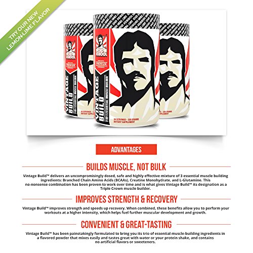 -. Binding : Health and Beauty -. Brand : Old School Labs -. EAN : 0862243000069 -. Feature : BUILD LEAN MUSCLE: As featured in Los Angeles Confidential Magazine. If you're looking for the best, you've found it! Vintage Build is the essential 3-in-1 natural muscle builder. Its unique formula delivers a proven trio of muscle-building ingredients in a flavored powder that mixes easily and tastes great with water or your favorite drinks. / TESTED AND TRUSTED: Third-party tested supplement made exclusively with premium ingredients, including branched chain amino acids (BCAAs), creatine monohydrate, and L-glutamine. Suitable for men and women looking for lean muscle growth, not bulk. / GUARANTEED RESULTS OR YOUR MONEY BACK: Old School Labs products never compromise on quality and always include clear and complete supplement facts without any "proprietary blends." We stand by our products 100%. If you are not completely satisfied with any OSL product, we will help you resolve your concern or provide a full refund. / OSL HERITAGE: Old School Labs of California - Supplements That Make Sense, 40 Years in the Making. Only one thing has ever mattered to OSL of California: our customers. Before becoming a best-selling national brand with thousands of loyal customers and followers on social media, this was our priority and this will never change. Our team of experts is always available via email or on social media to answer your questions regarding the best way to use a product or reach your goals! Our products are sold on Amazon.com, proudly formulated in California & made in the U.S.A. -. IsAdultProduct : 0 -. Label : Old School Labs -. LegalDisclaimer : The statements on this page have not been evaluated by the FDA. This product is not intended to diagnose, treat, cure, or prevent any disease. -. Manufacturer : Old School Labs -. NumberOfItems : 1 -. PackageQuantity : 1 -. ProductGroup : Health and Beauty -. ProductTypeName : HEALTH_PERSONAL_CARE -. PublicationDate : 2015-08-27 -. Publisher : Old School Labs -. ReleaseDate : 2015-08-24 -. Studio : Old School Labs -. Title : VINTAGE BUILD - The Essential 3-in-1 Muscle Builder - Post Workout BCAAs, Creatine Monohydrate, and L-Glutamine (Lemon Lime), 347 Grams, 30 Servings -. UPC : 862243000069