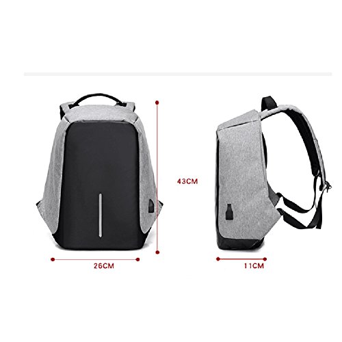 The best Anti-Theft USB Charging Travel Laptop Backpack Stay one step ahead of thieves and in sync with all of your favorite gadgets. The Travel Backpack is designed for everyday wear or international travel with innovative anti-theft features, a unisex modern style, and extra charging functionality. ?? Tear-resistant, water-resistant durable polyester fabric ?? Anti-theft design with 10 secure compartments and hidden zippers ?? Built-in USB charger port and elastic laptop storage pockets Specification: ○Iem Type: Laptop Backpack ○Material: Canvas ○Internal Material: Polyester ○Color: Black,Gray,Purple ○Open Way: Zipper ○Internal Structure: Mobile Phone Bags, Document Bags, Zipper Bags ○Gender: Unisex ○Style: Leisure, Business, Fashion ○Features: Comfortable, Convenient, Environmentally Friendly ○Application: School, Business, Travel ○Capacity: A4 Magazine, Wallet, Umbrella, Camera, Laptop ○Size: 26*43*11 cm (Width*Height*Thickness) ○Weight: 0.75kg ○ Note: There is no mobile power comes with the backpack inside. 0