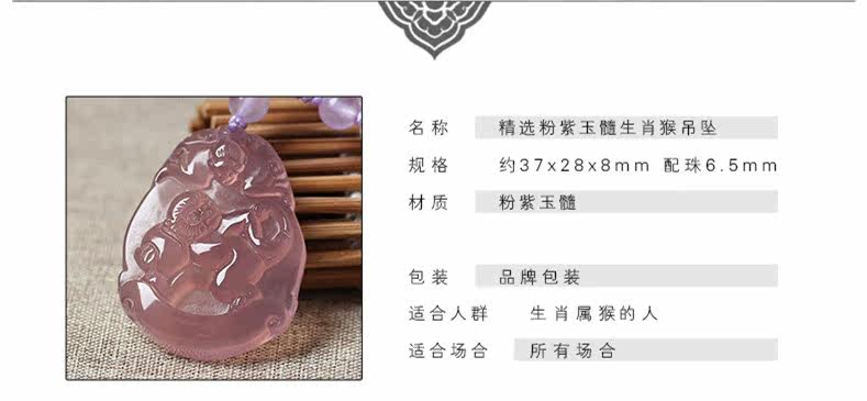 开光天然粉玉髓紫玉髓十二生肖猴桃报喜吊坠
