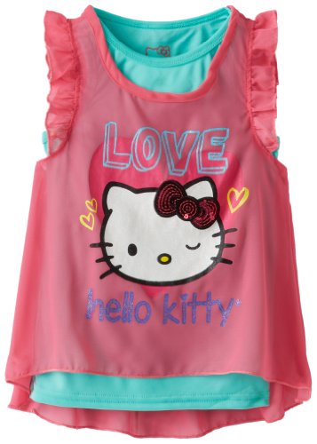 Hello Kitty Little Girls' Sugar Glitter Knit Top, Carmine Rose, 2T