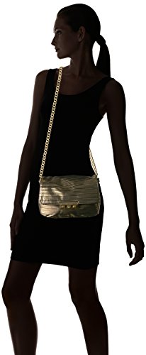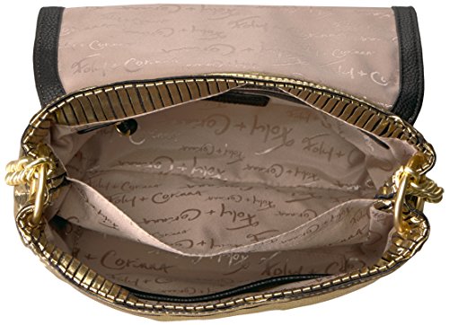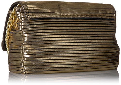 Bring life to the party with this Foley + Corinna metallic baguette featuring a gold chain strap and push lock closure.
