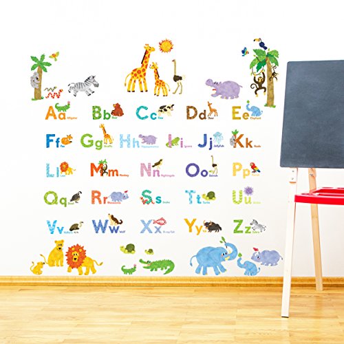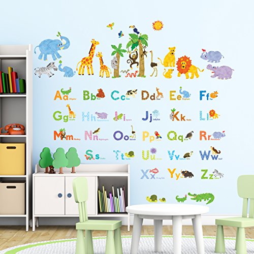 -. Title : Decowall DAT-1608P1513 Jungle Animals Alphabet Peel and Stick Nursery Kids Wall Decals Stickers