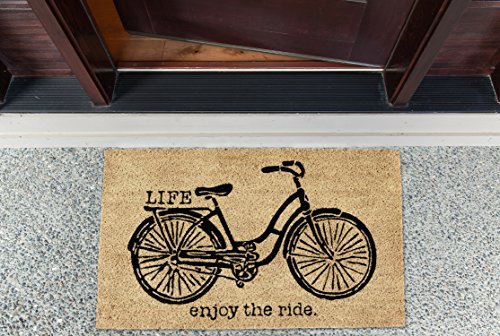 DII Indoor/Outdoor Natural Coir Easy Clean Rubber Back Entry Way Doormat For Patio, Front Door, All Weather Exterior Doors, 18 x 30" - Bicycle