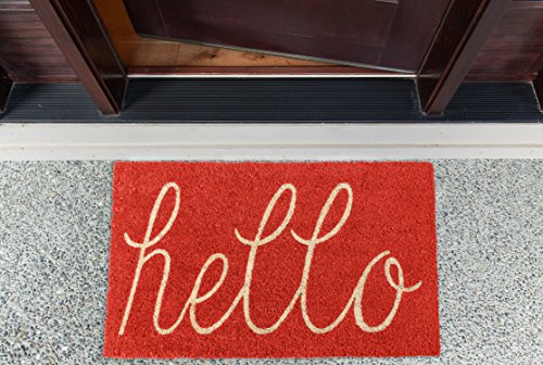 DII Indoor/Outdoor Natural Coir Easy Clean Rubber Back Entry Way Doormat For Patio, Front Door, All Weather Exterior Doors, 18 x 30" - Coral Hello