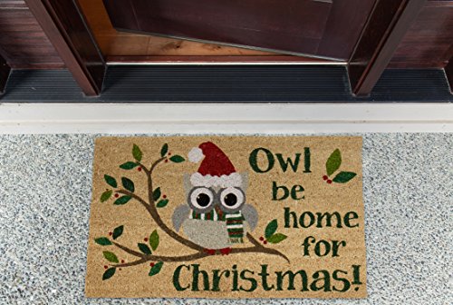 DII Indoor/Outdoor Natural Coir Easy Clean Rubber Back Entry Way Doormat For Patio, Front Door, All Weather Exterior Doors, 18 x 30" - Owl Be Home Christmas