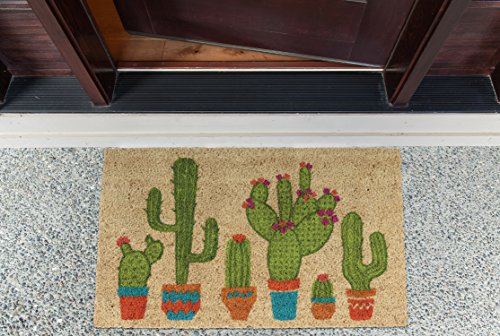 DII Indoor/Outdoor Natural Coir Easy Clean Rubber Back Entry Way Doormat For Patio, Front Door, All Weather Exterior Doors, 18 x 30" - Cactus