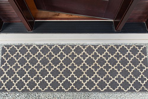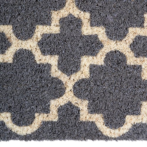 DII Indoor/Outdoor Natural Coir Easy Clean Rubber Back Extra Long Entry Way Doormat For Patio, Front Door, All Weather Exterior Doors, 18 x 60" - Gray Moroccan Lattice