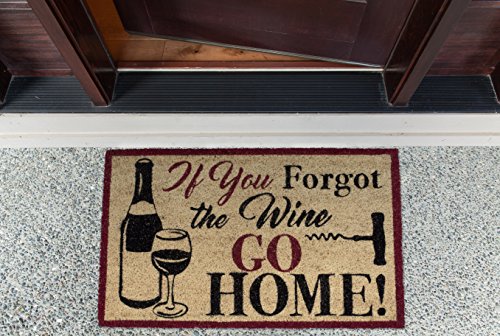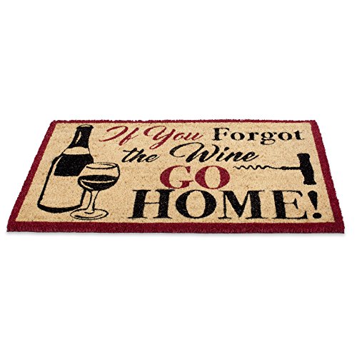 DII Indoor/Outdoor Natural Coir Easy Clean Rubber Back Entry Way Doormat For Patio, Front Door, All Weather Exterior Doors, 18 x 30" - If You Forgot the Wine GO HOME