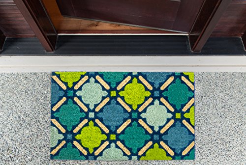 DII Indoor/Outdoor Natural Coir Easy Clean Rubber Back Entry Way Doormat For Patio, Front Door, All Weather Exterior Doors, 18 x 30" - Blue Masaic