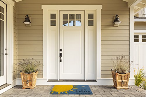 DII Indoor/Outdoor Natural Coir Easy Clean Rubber Back Entry Way Doormat For Patio, Front Door, All Weather Exterior Doors, 18 x 30" - Blue Hello