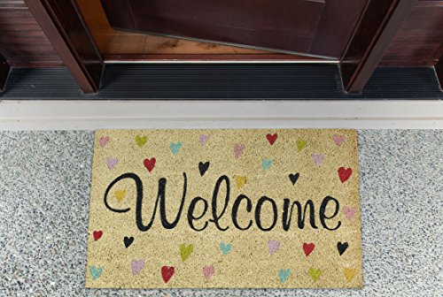 DII Indoor/Outdoor Natural Coir Easy Clean Rubber Back Entry Way Doormat For Patio, Front Door, All Weather Exterior Doors, 18 x 30" - Welcome Hearts