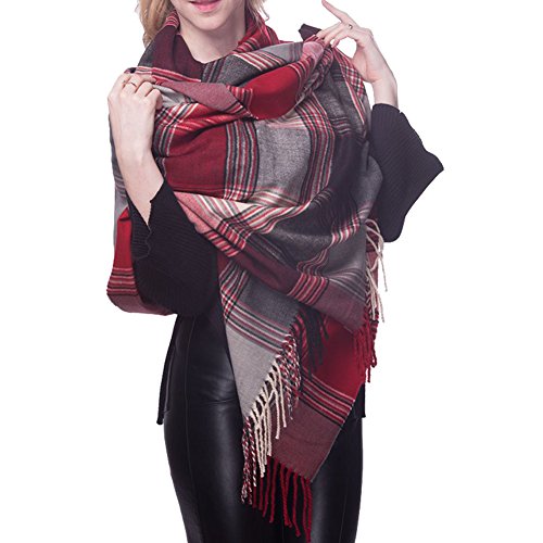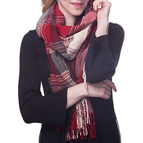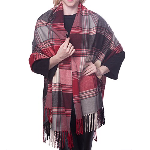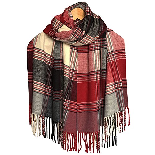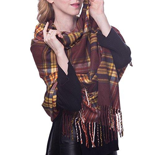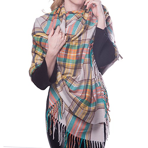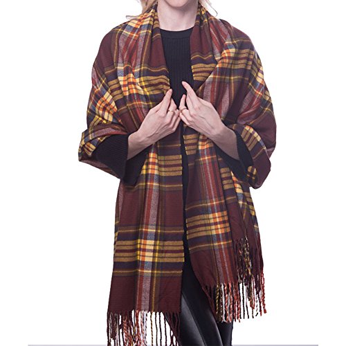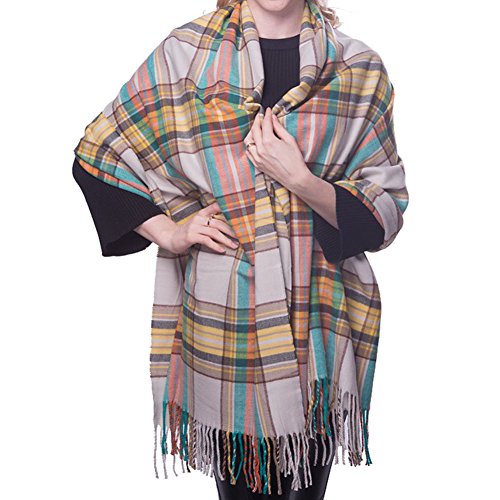 | N'joy Long Shawl Scarf, Tartan, Solid Color Blanket, Plaid Blanket with Fringe Trims |