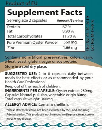 -. Title : Premium Oyster Powder - 60 Capsules - Zinc and trace element benefits from oyster meat extraction
