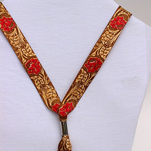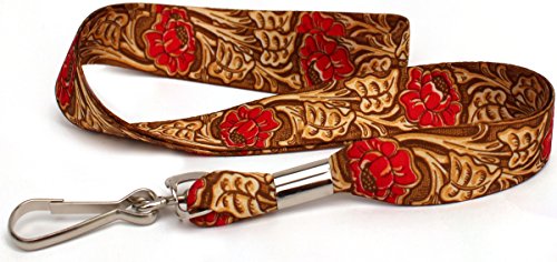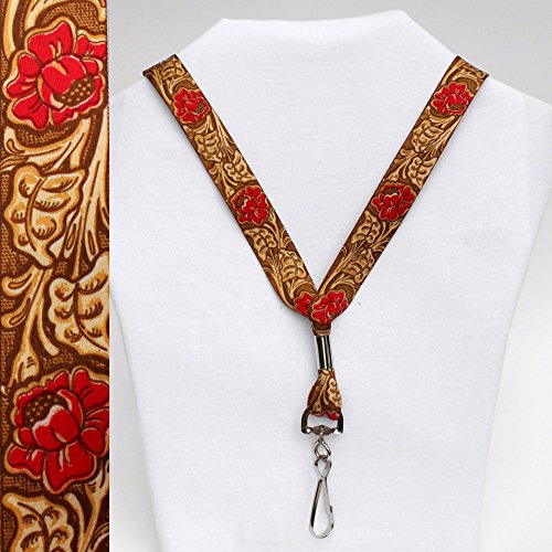 Faux Tooled Western Cowboy Leather - Red - Soft Printed ID Neck Lanyard