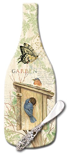 CounterArt Nature's Trail Wine Bottle Shaped Glass Cheese Board with Spreader Knife, 12-1/2"
