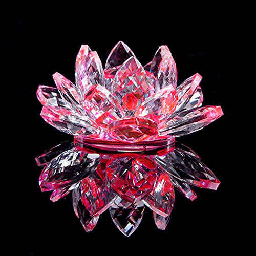 Chunkai Crystal Glass Lotus Flower Symbol Of Purity Home Office Decoration be Ideal Gift with Gift Box 5 Inch Pink