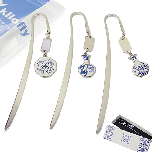 kilofly Metal Hook Bookmark with Chinese Porcelain Pendant Value Pack [Set of 3]