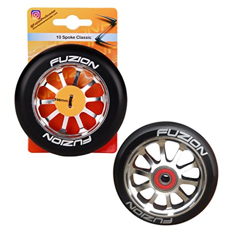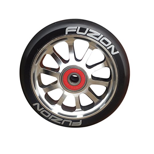 Title : Fuzion 10 Spoke Metal Core 110mm Pro Scooter Wheel with Abec 9 Bearings (SILVER BLACK)