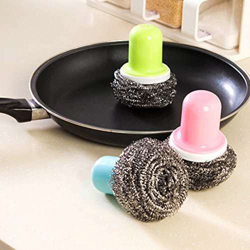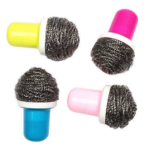 Fani 4 Pack Stainless Steel Sponges Scrubbers With Handle Stainless Steel Scourer Cleaning Brush for Kitchen Bathroom Pan Pot