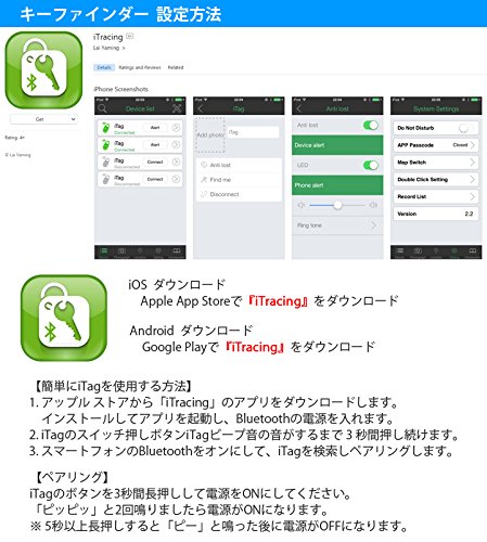 Buy black and pink. All instructions are in English. Batteries already installed. The instruction was in English. If you use the application according to the instructions, the map only supports China. Using the product description application, Google Maps is used, so I think that you can use it in Japan if you use it. However, the evaluation of the application was low evaluation. From here it is my misunderstanding. When I first dropped it on the go and put it on, I purchased it by thinking that it can be tracked with the GPS built into the key finder from the mobile. However, GPS is not built in this, it seems impossible to pursue. To the end, when carrying the key finder and the connecting terminal, I drop the key finder and when I move away from the connected terminal, I seem to seize the GPS information from the connected terminal and record it and display it. So it is necessary to check if GPS is attached to the terminal you use. Also, both of the items that arrived at my source are switched on and the alarm sounds of unknown reasons in the neglected state inquired to the seller, both say that it is hard to think that the initial failure arrives It was. So, there may be compatibility problems with my terminal. It seems that the seller possesses the same thing, and it seems that this kind of thing is the first time. There were various other problems, but sellers responded very carefully and solved other problems, for the time being, for the time being, when the time can be used to turn off the power and use the power supply again I will try putting on. Thank you very much.