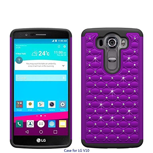 LG V10 Case (TMOBILE/VERIZON/AT&T), Purple on Black Skin Spot Diamond Studded Bling Crystal Rhinestone Dual Layer Hybrid Cover Silicone Rubber Skin Hard Case For LG V10 Cover
