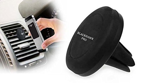 GREAT FOR iPhones! Air vent mount w/ RAPID HOLD TECHNOLOGY Improved dual layer magnetic holder securley holds any smartphone or small tablet in place with BLACKHAWKS innovative Rapid Hold Technology. Holds Samsung, Apple iPhone, LG, Blackberry or any other cell phone securely in place.