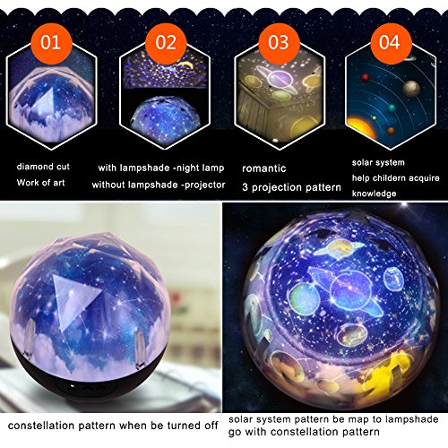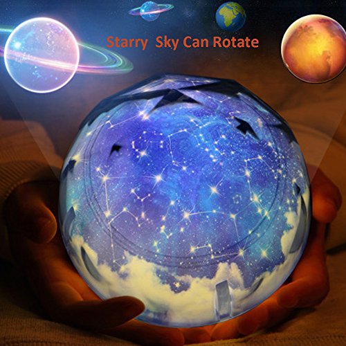 Night Light Projection Lamp, Hallowon Star Romantic Rotating Sky Cosmos Cover Projector Night Lighting for Children Adults Bedroom, Mood/Decorative Light, Baby Nursery Light