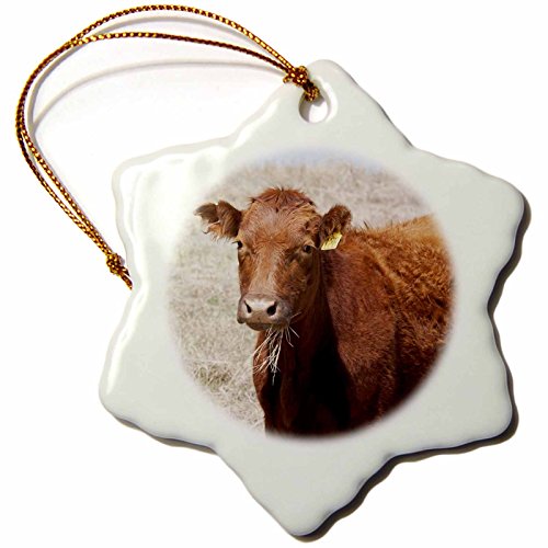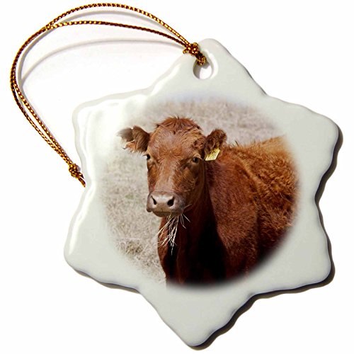 3dRose orn_140259_1 Red Angus Cow with Grass in Mouth-Na02 Pwo0000-Piperanne Worcester-Snowflake Ornament, 3-Inch, Porcelain