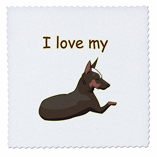 3dRose qs_129041_2 Cute and Cuddly Canine I Love My Miniature Pinscher-Quilt Square, 6 by 6-Inch
