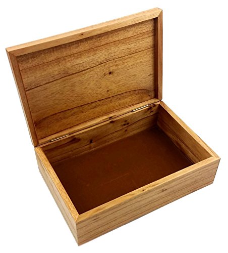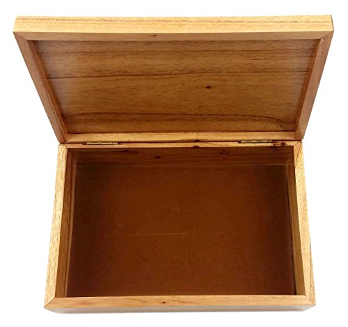 Box size: 9 x 6 x 3 inches (22.9 x 15.2 x 7.6cm). Inside dims of box: 8.25 x 5.25 x 2D inches (21 x 13.3 x 5.1D cm). Brass hinges used for easy opening.