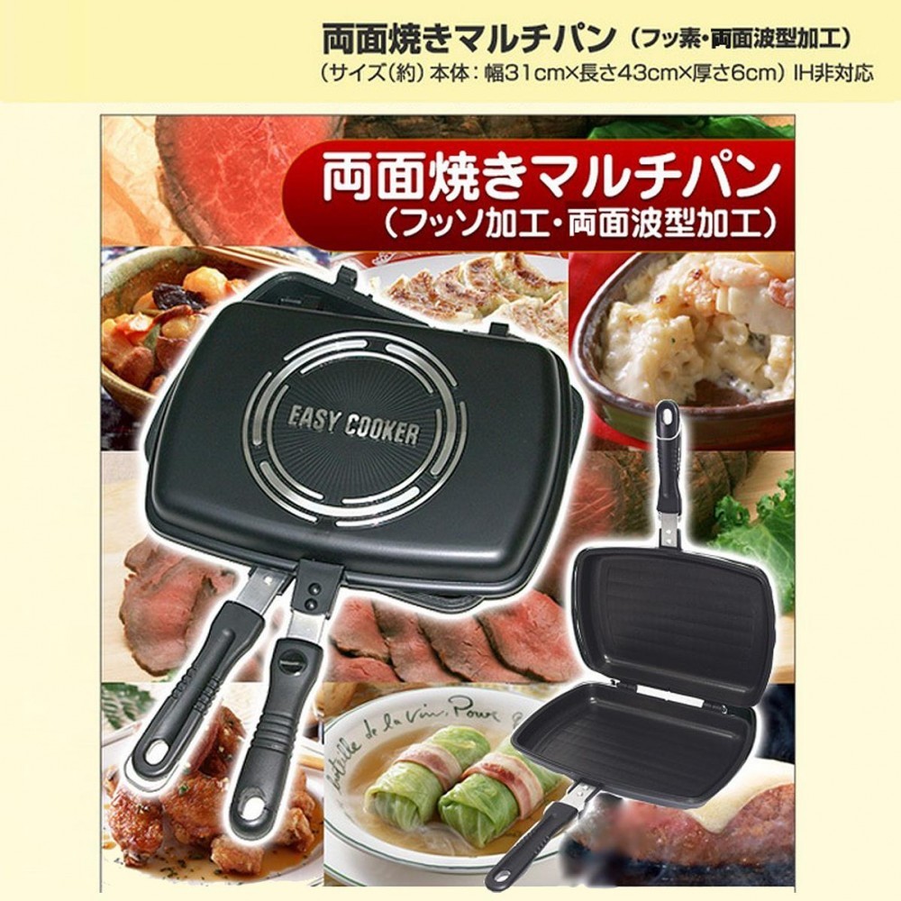 | 上下ともにフライパンの機能を持った両面フライパンです。上下を重ねた状態で調理できる優れもの!波型なので油も切れてヘルシーです。フッ素樹脂加工なので焦げ付きにくく、油少量で簡単に調理ができます。また、上下を取り外し別々で使う事も可能です。 |