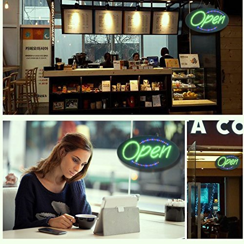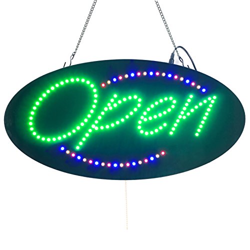 Leadleds 1910-3 Neon Sign Portable 19-inch Led Open Sign Board Green Red Blue Yellow Four Colors with 3 Light Modes for Beauty Salon Nail Sushi Bakery Barber Massage Restaurant Office Store Business