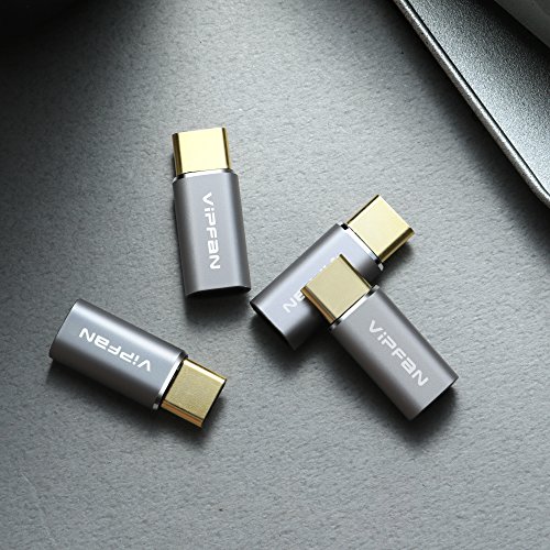 USB C adapter, VIPFAN USB-C to Micro USB Convert GOLD-PLATED Connector fast charger for New MacBook Samsung Galaxy S8 Plus, Google Pixel, LG V30,G6,V20, Nintendo Switch【4PACK,SILVER】